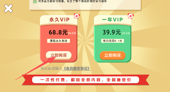 2、点击永久VIP服务选择立即购买,支付款项以后,激活解锁。