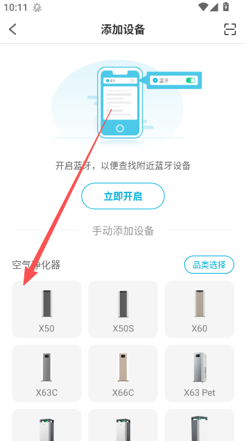 2、选择你所使用空气净化器或是智能净水机的品牌,开始连接。