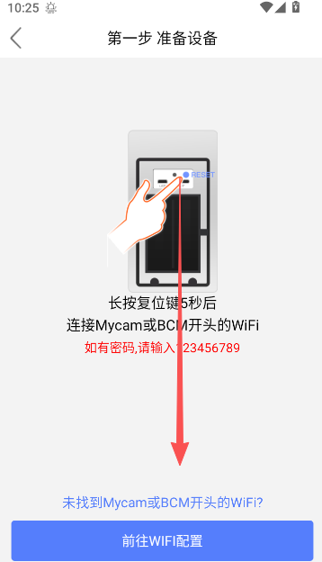 2.如遇网络问题或需要更改WIFI环境时,需重新对设备进行网络配置,首先长按机身背后"RESET"按键,语音提示"恢复出厂设置",等待铃恢复出厂,开机成功语音提示"请配置网络后",重复配网步骤,为设备配置新的WIFI网络
