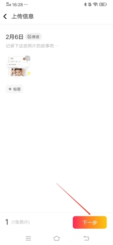 3、在上传信息中,我们可以将关于这张照片的故事写进来,或者是添加一些标签,用来记录所上传的信息部分是什么。