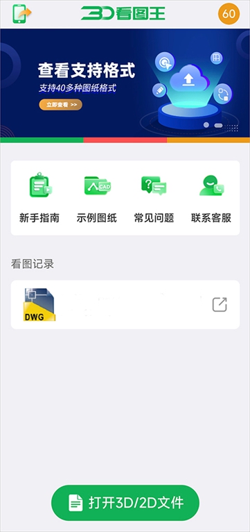 3、3D看图王中查看过的图纸记录会保留30天后自动删除,并没有主动删除记录这个说法。