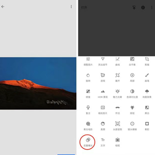 1、用指划修图snapseed打开素材图片,在应用首页选择工具中的“双重曝光”功能选项打开。