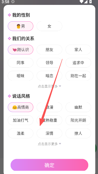 3、如果觉得不满意的话,还可以调整各种语境,还有性别等信息修改,以创造出更加有意思的对话。