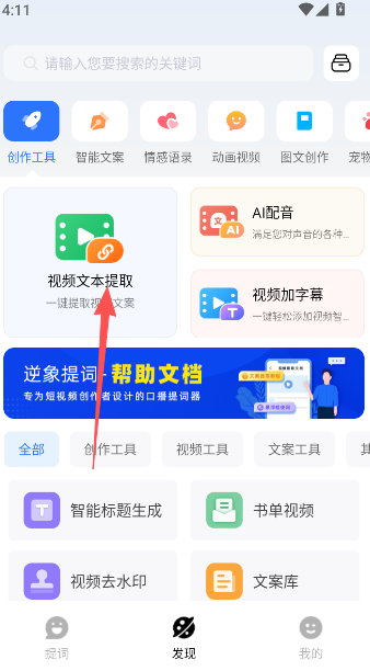 3、查看可操作的提词部分,比如视频文本提取、AI配音或是其他相关的。