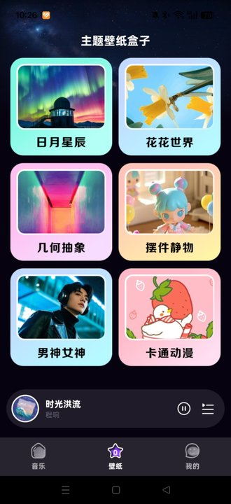 1、波波畅听除了有歌曲播放下载以外,还为大家提供了许多精美的壁纸,点击应用壁纸界面,去筛选自己喜欢的主题壁纸风格。