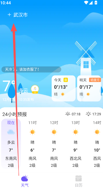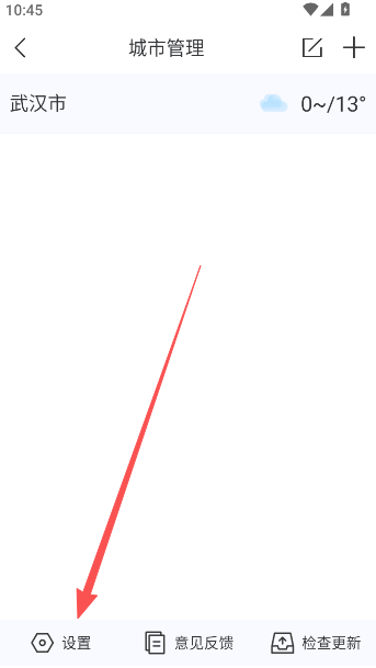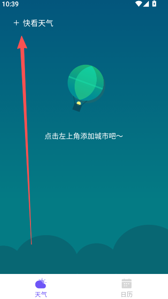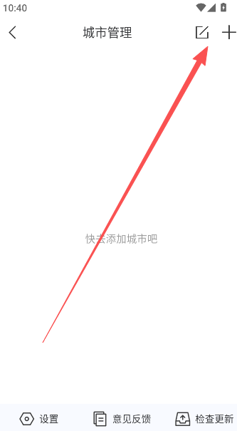 1、点击软件首页上方+符号开始添加你所要查询的天气城市所在的地点。