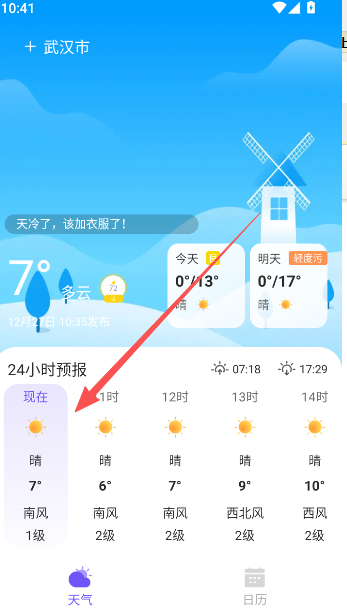 5、这里就是当前的实时天气状况显示,其余的时间部分,都是一个小时一个小时记录的,查看更多就请下滑页面,具体去操作吧。