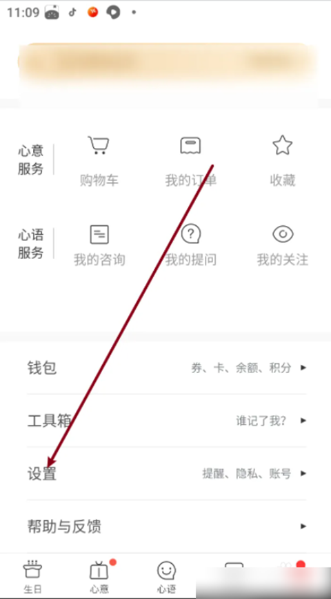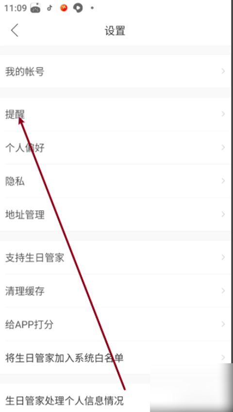 步骤一:启动生日管家App,在用户界面点击设置,进入提醒项设置页面。