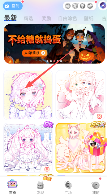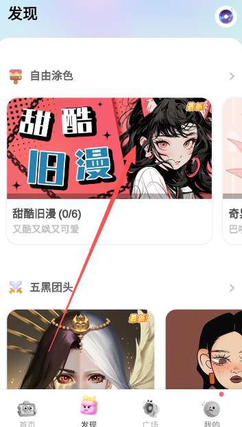 2、发现页,为大家提供一些热门人气动漫角色涂色,可以尝试以作者的视角参与其中,解锁不同角色的绘画技巧操作,用色彩表达出你的创意。
