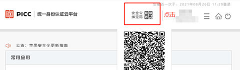 1、首次使用请进行绑定人保安全令下载安装后需要进行绑定,有以下两种方式,PC端已登录统一身份认证云平台的,点击安全令绑定码的登录界面,点击扫码绑定,对准上面的安全令绑定码进行扫码绑定登录即可使用。