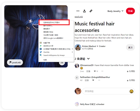 1、首先找到要下载的图片,鼠标右键点击图片,点击“在新标签页面中打开图片”。