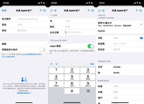 3、——使用苹果手机的用户需要在App Store登录美国ID来下载海外的社媒软件,创建美国ID需要用到美国的手机号、地址以及美国的IP地址,还需准备一个邮箱来收取验证码。