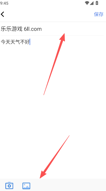 3、点击内容区域输入标题和文字部分,选择图片附件进行保存。