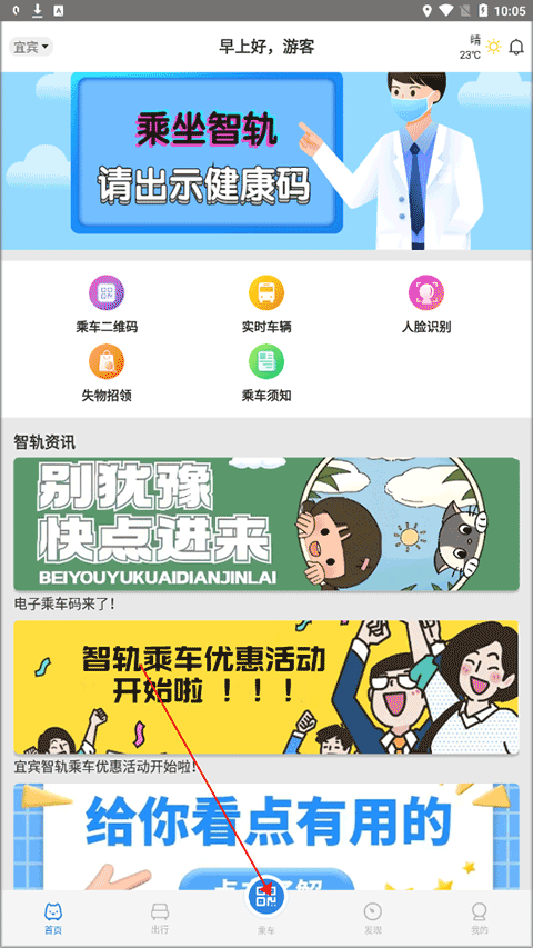5、显示二维码,刷码上下车支付宜宾智轨。