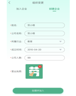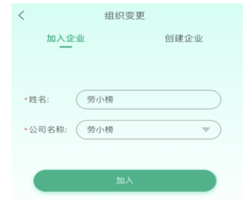 2.加入企业:填写姓名,选填已经创建的公司,进行加入企业。