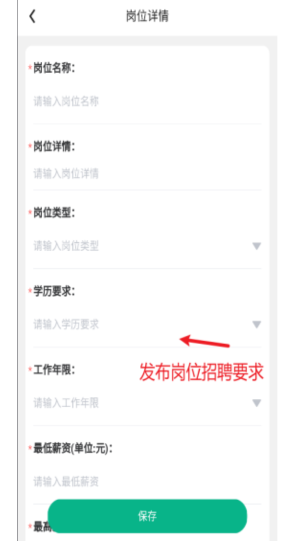 5.职位管理:填写岗位要求、薪资福利等内容信息,进行保存提交,等待审核通过。