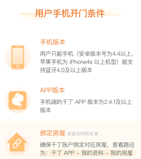 2、每次回家走到单元门前十米内开启手机蓝牙打开手机定位,进入下载好的千丁点击下方的【门禁】或者轻轻摇一摇手机单元门便会立即打开。