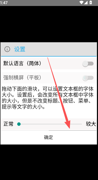 2、在此拖动字体大小进度条,完成字号的设置的修改操作。