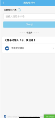 通过“快速绑卡”方式绑定,在“添加银行卡”页面选择“无需收到输入卡号,快速绑卡”方式,选择已办好的建行工会会员卡,补充个人信息