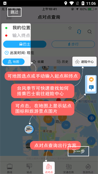 2、“路线”界面可为大家展示天气及巴士路线信息;