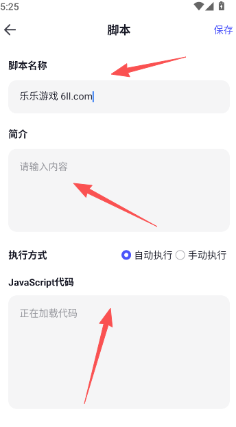3、输入脚本名称、简介内容并选择执行方式,下方还可以添加你所编辑的内容代码部分。