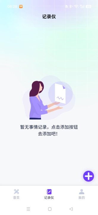 1、实用测量仪app的事件记录主要集中在记录仪版块,来到图示页面以后,点击右下方的+开始操作。