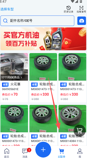 5、如果有想购买汽车相关配件,可以在买配件的汽配商城中去选购下单。