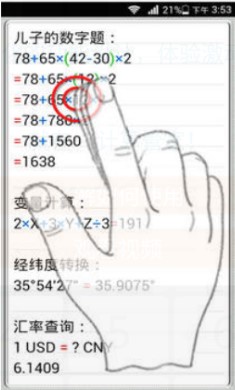 3、上下滑动文本框可方便地查看以前的计算历史;