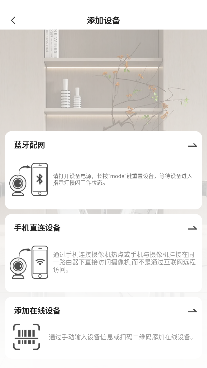 2、通过扫描机身二维码或输入设备序列号完成摄像头添加。绑定过程中需保持设备与手机连接同一Wi-Fi网络。