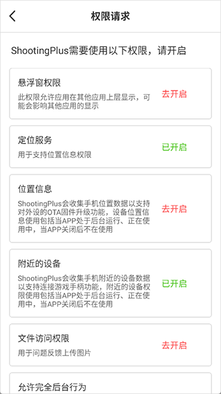 2、软件下载与安装打开乐乐游戏搜索到ShootingPlus软件,点击下载并安装。初次打开有使用引导提示,过完引导。软件内权限请求全部打开,重点悬浮窗权限。