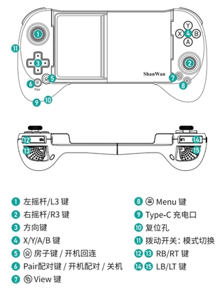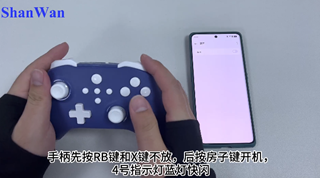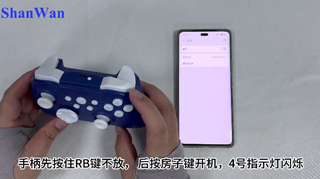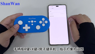 1、蓝牙连接手柄先按【RB键】不放,后按【房子键】开机,指示灯紫灯闪烁。打开手机蓝牙,搜索到“ShanWanQ13L”点击连接。已成功连接过后再次使用时,再次按【RB键】不放,后按【房子键】开机自动回连。