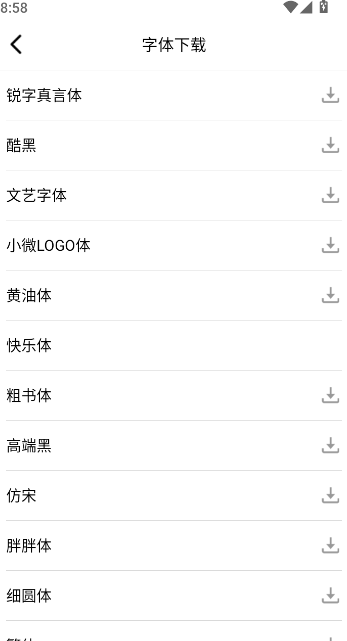 3、点击字体对应栏目的下载图标,完成字体下载的添加操作。