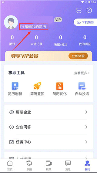 2、然后点击个人头像旁边的【编辑我的简历】按钮;