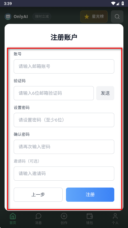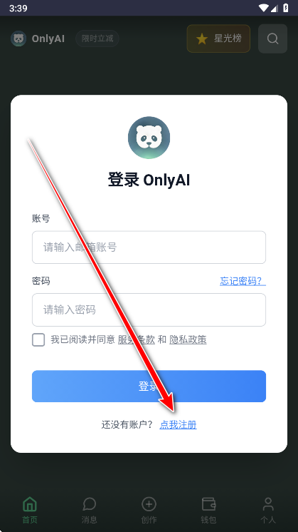 1、打开OnlyAI,点击点我注册。