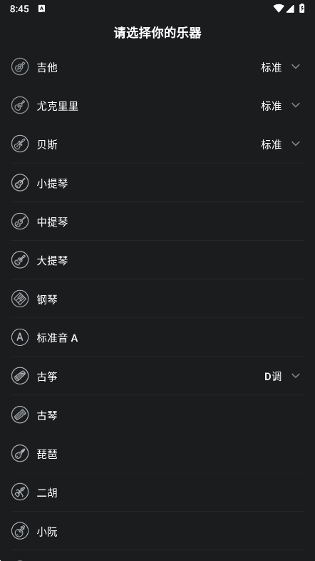 1、在本站下载安装打开,首先选择需要调音的乐器