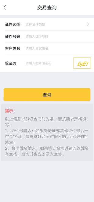 3、输入相关信息,即可查询交易进度或合同交易收据。