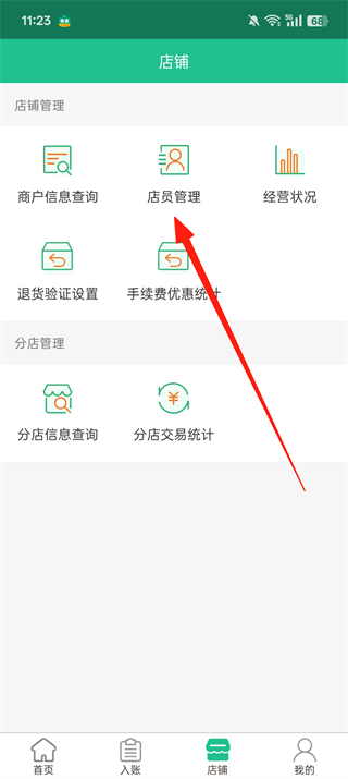 2、然后点击【店员管理】,在当前页面进行店员管理的添加操作部分。