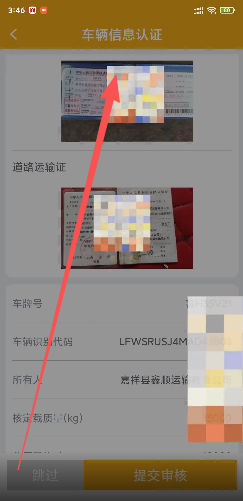 5、认证操作完成以后,继续车辆信息的认证部分。