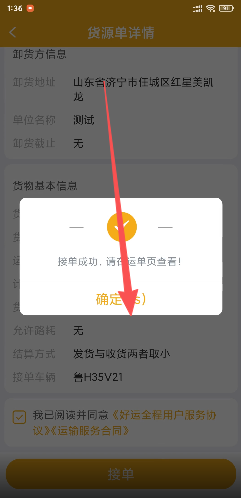 4、在货源单详情界面确认以上信息,完成以后便可以正式的接单赚钱了。