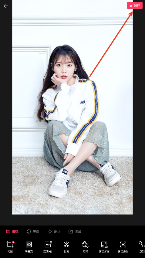 5.编辑完成后,点击右上角保存按钮,选择分辨率并保存图片。