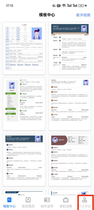 2.选择喜欢的简历模板。
