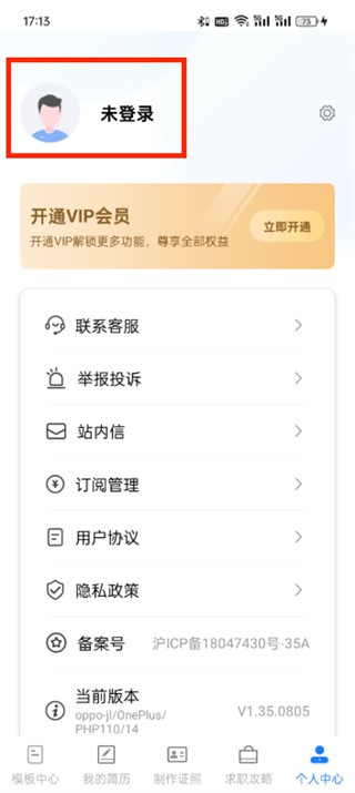 1.打开简历管家,点击下方导航窗口中的【个人中心】。