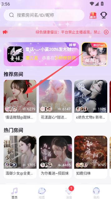 2、来到首页以后,选择一个你感兴趣的直播间加入。