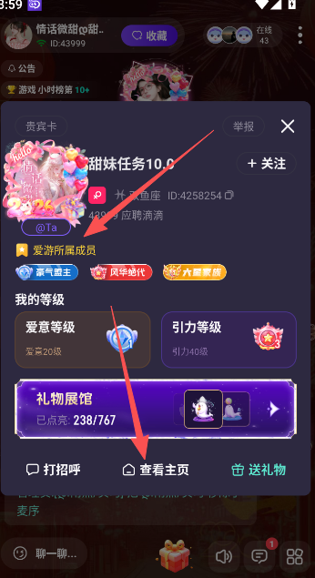3、点击直播房间内下方的送礼物功能选项。