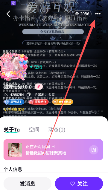 2、点击用户主页右上方的三点图标。