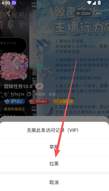 3、点击拉黑即可。