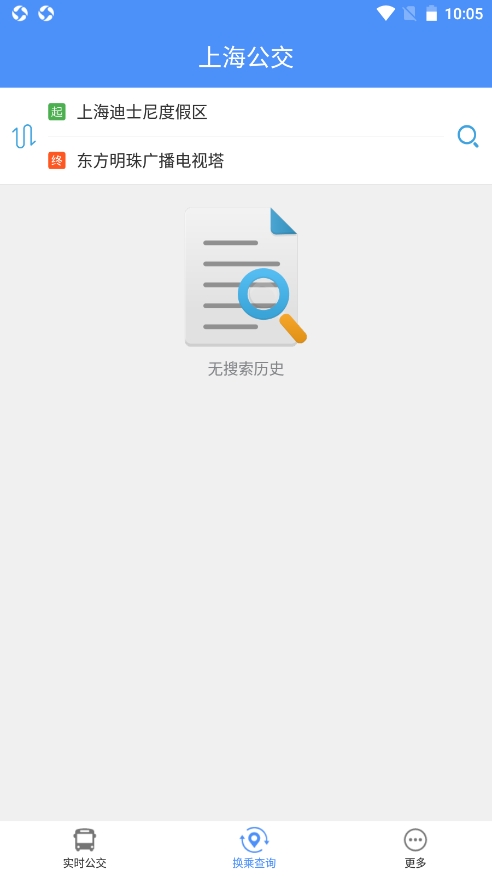 4、还可以进行换乘查询,比如说从迪士尼度假区到东方明珠,点击旁边的放大镜图标;