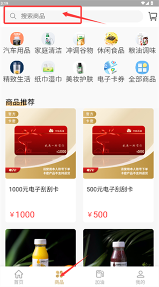 2、切换至商品页,根据商品属性分类或是直接搜索名称开始下单购买。