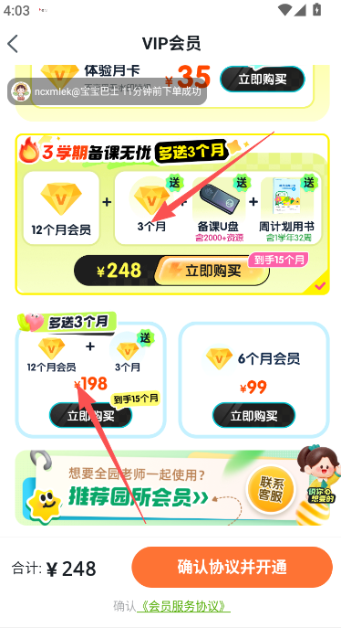 3、根据实际备课学习需求,选择确认协议并开通即可。