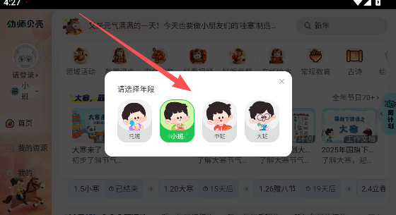 1、幼师贝壳HD和普通版一样,使用都是需要先选择年级。